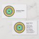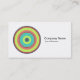 A business card template with an attractive colourful concentric circle motif, creating a clean modern design suitable for many types of business. Company name and business on the front of the card. Name, address, telephony, email and web address on the reverse with a repeat of the motif. The card can also be further customised.