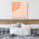 Customisable Colourful Concentric Circles Canvas with white background below a second background of small tiled concentric circles an finally the same concentric circle placed large, and cropped to reveal only one quarter of the circle, in the corner of the canvas. Four of the same canvas will work together to create a large complete circle in the middle as a split image.