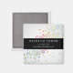 Coordinates with the Colourful Confetti Bokeh on Grey Modern Business Card by 1201AM. A rainbow-hued splash of colourful confetti dots create an intriguing backdrop on this personalised magnet. Your name or business name is simply styled in the centre on a solid black strip. Great to use for promotional pieces or give-aways.