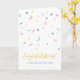 This arty greeting card design features colourful hand-painted confetti with modern script text "Congratulations!".