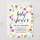 Fun and festive baby shower invitation featuring colourful confetti dots. The colours are perfect for it's a girl showers. Other colours can be found in my store.