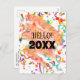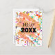 This new year designed postcard cover features colourful confetti and an orange squiggle. Personalise the text on the front and back, remove any text or click customise to select a different font style, size, and colour you prefer.