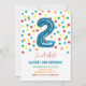 Colourful Confetti Two Balloon 2nd Birthday Boy Invitation