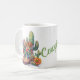 Western themed mug, with lovely artwork of a pair of colourful cowgirl boots and cactus and flowers. Green custom text reads Cowgirl, and can be personalised to read what you want. Great gift idea for her.