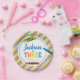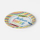 These fun, colourful paper plates are great for colouring themed birthday parties. Colourful crayons line the perimiter of the plate against a colourful rainbow striped background. Your childs name and age can be customised with fun handwritten-like text to add to the crayon effect. Just hit the "click to customise further" link to change the age (letter by letter) and delete the ones you don't need or to move the crayons on the side to fit the size of your child's name.