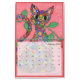 This colourful boho calendar features a variety of different bright, vibrant, richly coloured whimsical cartoon drawings of folk art animals by artist Debbie Hart. The creatures range from cats and dogs to birds, monkeys, lizards, snakes and squirrels, including fantasy animal spirits and fairies. Each month features a different hand-drawn, hand-painted watercolor artwork on a coordinated brightly coloured background. Behind the calendar grid on each page is a semi-transparent background that allows for easy viewing of the numbers while also showing the art beneath them. This fun bohemian calendar is great for kids, teens, tweens, and adults (the young-at-heart of all ages), a great way to brighten up the walls of your room, home or office.