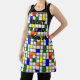 This apron has a mid-century modern design of a grid with coloured squares and rectangles. It also has coloured circles placed on the grid lines. If you like the design but prefer different colours, message me.