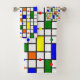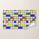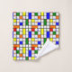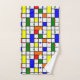 This towel set has a mid-century modern design of a grid with coloured squares and rectangles. It also has coloured circles placed on the grid lines. If you like the design but prefer different colours, message me.