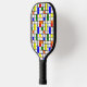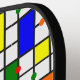 This pickleball paddle has a mid-century modern design of a grid with coloured squares and rectangles. It also has coloured circles placed on the grid lines. If you like the design but prefer different colours, message me.