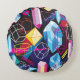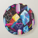Colourful crystals, dark abstract background round cushion