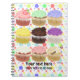 Personalise this cute notebook with your own name or text, or delete the text in the template to order it with just the artwork. Vector drawing of cupcakes on a colourful polka-dot background.