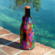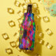 Stamped with colourful image of curved triangles or coloured ripples. In different vibrant colours, yellow, lime green, orange reddish, light blue, pink, lilac, red brownish or dark brown... with changes of tonalities that can cause the perception of curves or waves and some luminosity in some traces.