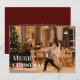 The design shows a custom family photo and a "merry christmas" text in bold typography in the front and custom merry christmas wishes in the back.