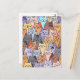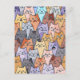 Colourful Cute Cat Crowd Pattern Whimsical Cat Fac Postcard