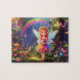 Colourful Beautiful Fluffy Cute Little Fairy With Rainbow Colours in the Enchanted Forest, Magic World, Fantasy Art for girls. Girly Design.