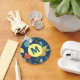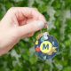 Cute colourful flower pattern on dark blue background monogrammed keychain.