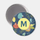 Cute colourful flower pattern on dark blue background monogrammed magnet.