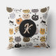 Colourful Cute Funny Cats & Paw Pattern Monogram Cushion