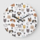 Colourful Cute Funny Dogs & Dog Paw Pattern Large Clock