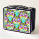 Colourful Cyan and Black Oracle Owl Pattern Metal Lunch Box