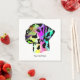A cute dalmatian dog's head coloured in with bright colours. The colours illustrate that although these dogs might be black and white, they are full of personality.