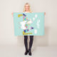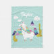 Fun and colourful fleece blanket featuring adorable illustrations of an alpaca with colourful pyramids, clouds and succulents. This customisable blanket will be perfect as a personalised gift.