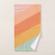 This stylish bath towel set features a cute retro style striped pattern in a pastel colour palette of mint green, peach, orange, and pink. Great gift idea.