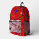 Lightweight and durable, our custom all-over-print Backpack is just what you need. The spacious interior is ideal for travel, school, gym, or any mobile storage need. Bring your stuff with you in style! Features Adjustable padded shoulder straps, two chambers on the inside for laptop storage, mesh side pockets and an identification label