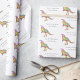 The unique watercolor artwork painted bright rainbow colours including pink, purple, yellow, orange, blue and teal green hues brings the parasaurolophus to life with plenty of personality. Whether you’re wrapping toys or special birthday surprises, this cute Jurassic dinosaur gift wrap is guaranteed to stand out and spread smiles.