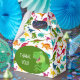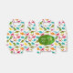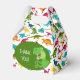 Does your little boy or girl love dinosaurs? This custom birthday party favour box is perfect! There's a big dinosaur T-Rex, a green background, and a fun colourful dino pattern.