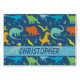 Colourful Dinosaur silhouette pattern that you can personalise and add your own name. Tyrannosaurus Rex, titanosaurs, Triceratop, raptors, Ankylosaurs, Dino-Birds, Stegosaurus, Apatosaurus, Pteranodon and more in a colourful pattern in blue background, and dinosaurs in green, blue, yellow and orange.