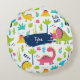 Colourful Dinosaur Pattern with Kids Name Round Cushion