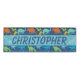 Colourful Dinosaur silhouette pattern that you can personalise and add your own name. Tyrannosaurus Rex, titanosaurs, Triceratop, raptors, Ankylosaurs, Dino-Birds, Stegosaurus, Apatosaurus, Pteranodon and more in a colourful pattern in blue background, and dinosaurs in green, blue, yellow and orange.