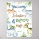 Colourful dinosaur birthday toddler party personalised welcome sign, more suitable for a boy.