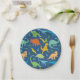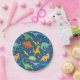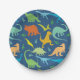 Colourful Dinosaur silhouette pattern. Tyrannosaurus Rex, titanosaurs, Triceratop, raptors, Ankylosaurs, Dino-Birds, Stegosaurus, Apatosaurus, Pteranodon and more in a colourful pattern in blue background, and dinosaurs in green, blue, yellow and orange.