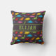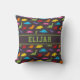 A throw pillow with a colourful pattern of cute silhouette of dinosaurs! They include red pterodactyl, green brontosaurus, indigo raptorex, orange t-rex, yellow triceratops, pink ankylosaurus, blue stegosaurus. Perfect for kids who love dinosaurs! Personalise with name of child in text template provided!