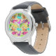 This kids' watch has a novelty design of dinosaurs scattered across the design.