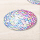 A set of round coasters featuring a multicolor disco ball! Perfect for a 1970s theme party or disco bachelorette.