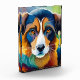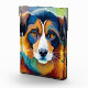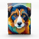 Colourful dog face close up photo block