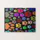 Colourful Dog Paw Prints On Black Jigsaw Puzzle