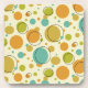 Add that splash of fun and colour to your coffee table with this funky circles mid century modern styled coaster. This whimsy geometric retro pattern features circles and dots in the colours of turquoise blue, gold, avocado green, orange, and black, on a light cream background.