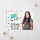 Colourful modern custom photo graduation announcement done in colourful polka dots and graphics of a aqua blue graduate's cap. Add your own photograph and personalise the black text to suit your graduation needs. Great as a graduation party invitation also.
