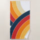 Abstract illustration of retro style rainbow arches design in red, orange, yellow, beige and dark blue colours on white background for everybody who likes retro style design and colour palette.