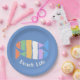Colourful Double Fish Design Paper Plates with customisable background colour.