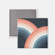 Abstract illustration of retro style rainbow design in pink, pastel pink, grey, turquoise, blue, dark blue colours on navy blue background