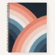 Abstract illustration of retro style rainbow design in pink, pastel pink, grey, turquoise, blue, dark blue colours on navy blue background