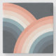 Abstract illustration of retro style rainbow design in pink, pastel pink, grey, turquoise, blue, dark blue colours on navy blue background