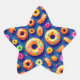 Colourful doughnuts and cookies with a blue background on a star sticker.