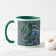 A colourful oriental dragon winding itself on a background of a Celtic knot ornament in two shades of green. A bright motif, perfect as a gift for dragonlovers and fantasy art fans.