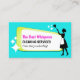 © Socialite Designs. Channeling the bold charm of the swinging '60s, this cleaning services business card bursts with colour, character, and a touch of sparkle. The front features a cheerful maid mid-dusting, with whimsical sparkles that say "spotless magic." A vintage-style banner frames your business name in true retro flair, while the reverse side carries that nostalgic vibe forward—perfect for residential or commercial cleaning pros who want to leave a memorable impression. Ideal for branding that’s bold, fun, and totally unforgettable. Colours can be changed to suit your brand.